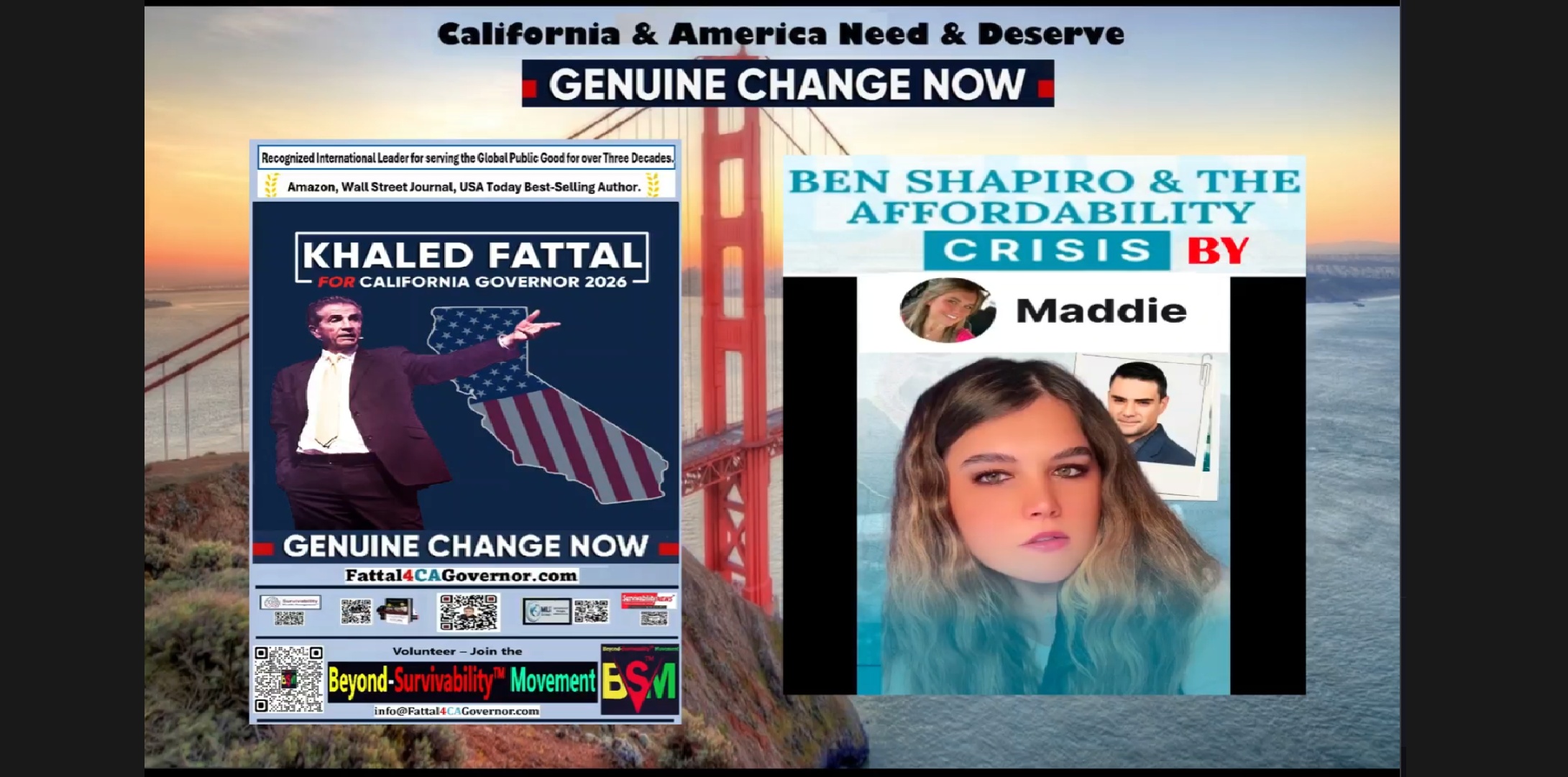 - Join chairman Khaled Fattal’s his run for California Governor 2026 & Fattal’s Beyond Survivability Movement to make his plans of “Genuine Change Now” happen.