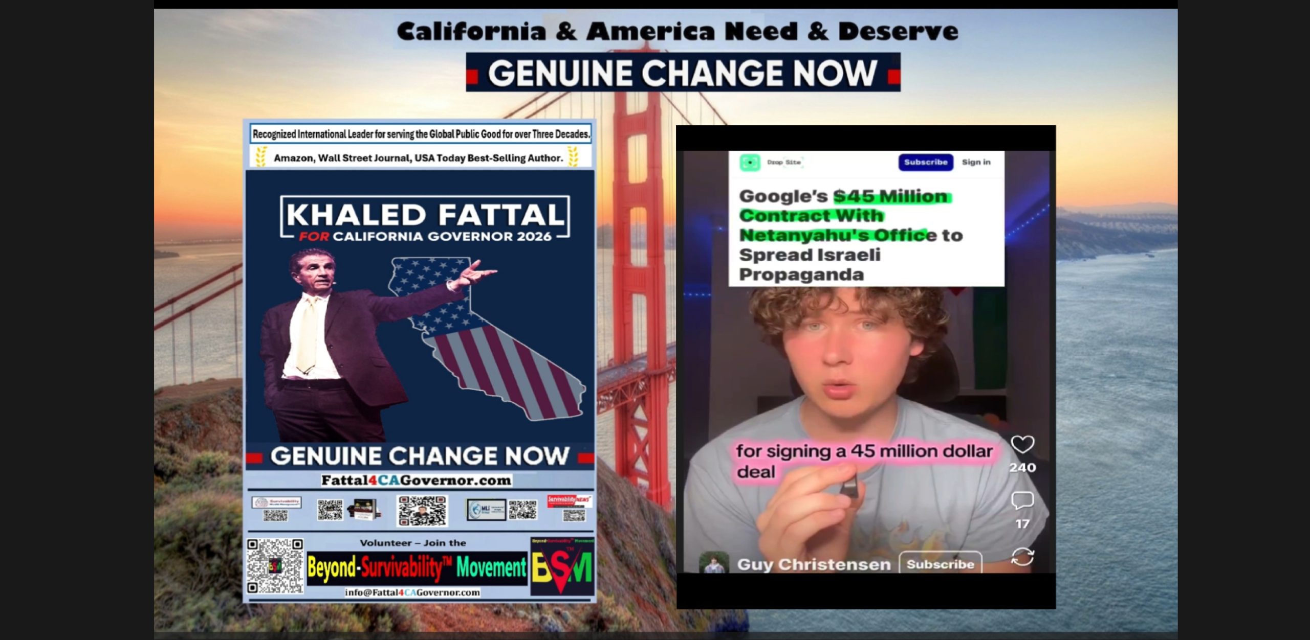 Not Just the “Uniparty” – Big Tech Google Exposed for Gaza Genocide Complicity. (Video) | Khaled Fattal 4 California Governor. (Video)